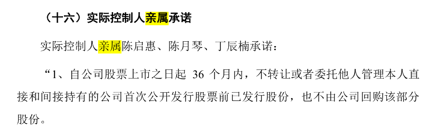 招股书显示,丁辰楠承诺自公司股票上市之日起 36 个月内,不转让或者委托他人管理其直接和间接持有的公司首次公开发行股票前已发行股份,也不由公司回购该部分股份。
