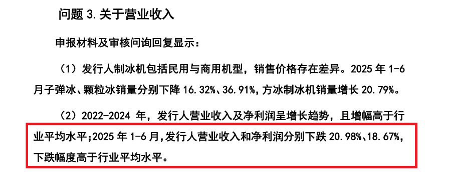 二轮问询中,交易所指出,2022-2024 年,惠康科技营业收入及净利润呈增长趋势,且增幅高于行业平均水平;2025年1-6月,公司营业收入和净利润分别下跌20.98%、18.67%,下跌幅度高于行业平均水平。惠康科技被要求说明2025年上半年收入、净利润下滑的原因,公司业绩变动趋势与可比公司及行业平均水平不同的合理性。