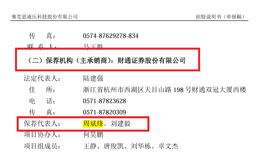 值得关注的是,赛克思的保荐机构正是财通证券保荐人为周斌烽、刘建毅。2020年1月2日,证监会发布关于对周斌烽、刘建毅采取暂不受理与行政许可有关文件3个月措施的决定。原文显示经查,证监会周斌烽、刘建毅在担任赛克思液压科技股份有限公司首次公开发行股票并上市保荐代表人过程中,未勤勉尽责,对发行人经销模式、银行借款、客户等事项的核查不充分。按照相关规定,证监会决定在2019年11月1日至2020年1月31日期间暂不受理周斌烽、刘建毅出具的与行政许可有关的文件。
